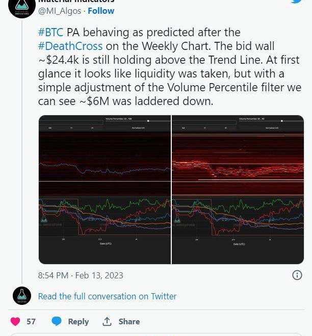 Maartunn使用了来自监测资源材料指标的数据,该指标在其自己的评论中显示,流动性云顶部附近的稀疏出价正在重新定位。