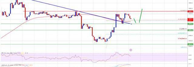 比特币价格在30,000美元以下开始下行修正。然而,BTC多头在29,200美元区域附近活跃。在29,123美元附近形成低点,价格开始新的上涨。