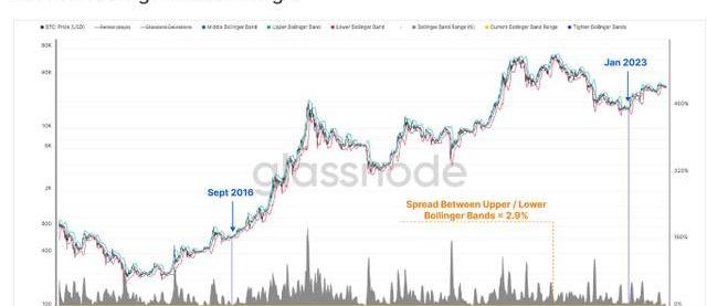 加密货币专家兼链上分析师JamesCheck在社交媒体上被称为Checkmatey,他最近强调了比特币的沉默程度。他指出,比特币布林线上下区间的差距仅为2.9%,区间非常窄。Glassnode著名链上分析师Check强调,比特币在过去仅两次进入布林带的有限区间:2016年9月和2023年1月。这表明这可能是暴风雨前的平静。