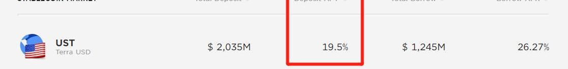 Anchor是一款去中心化储蓄协议,目标是为UST储蓄用户提供20%左右的收益率,Anchor白皮书描绘的愿景是:尽管出现了很多金融产品,但在DeFi领域,还没有一款足够简单、安全而且能获得大众认可的储蓄产品。最终,我们希望Anchor成为区块链领域获得被动收入的黄金标准。20%的收益率在加密领域看似一般,但是在借贷赛道中横向对比以下,20%已经具有足够的竞争力了,通过数据我们可以看到,Anchor的储蓄利率几乎稳定在19%左右,这也是Anchor最核心的增长手段,这样稳定的利率足够吸引大玩家。目前Anchor的总锁仓为45亿美金,位于整个DeFi协议榜单的第15名。