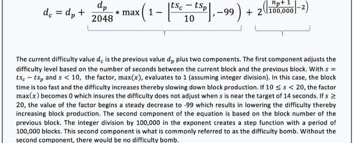 有关难度计算的方法:It’sNottheDifficult有关如何推迟难度炸弹:AMethodtoDiffusetheDifficultyBomb一些更老的文章见?此处?和?此处难度炸弹的计算两部分组成:A部分,用于调整难度、平抑出块时间的波动;B部分,即难度炸弹本体。