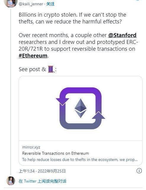 有人认为可逆交易违背了区块链的目的,但提议的标准并不意味着取代ERC-20代币或使以太坊交易可逆,王说。她证实,他们“只是允许在交易后的短时间内对盗窃进行质疑并可能恢复。”
