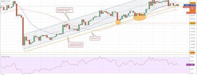 两个移动均线均在上升,RSI仍在超买区域附近,这表明多头处于主导地位。