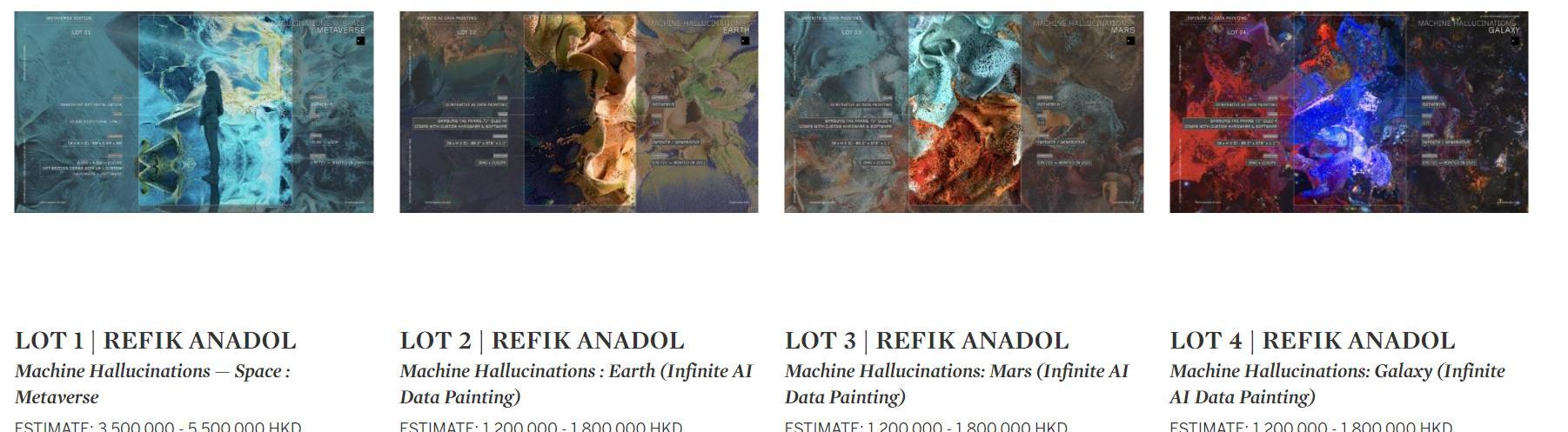 巴比特讯,9月16日,苏富比发文表示,将于9月30日至10月4日在线上举行名为“机器幻觉--空间:元宇宙”的拍卖会,将拍卖数字媒体艺术家RefikAnadol的沉浸式NFT作品合集。据悉,该系列作品的灵感来自于其工作室与美国宇航局喷气推进实验室于2018年初开始的合作,以及他对太空探索摄影史的长期研究,共有8幅拍品,包括地球、火星、银河等。其中第一幅拍品“机器幻觉——空间:元宇宙”的估价在350万-550万港元。此外,实体展览也将于9月30日至10月17日在亚洲数字艺术博览会展出。