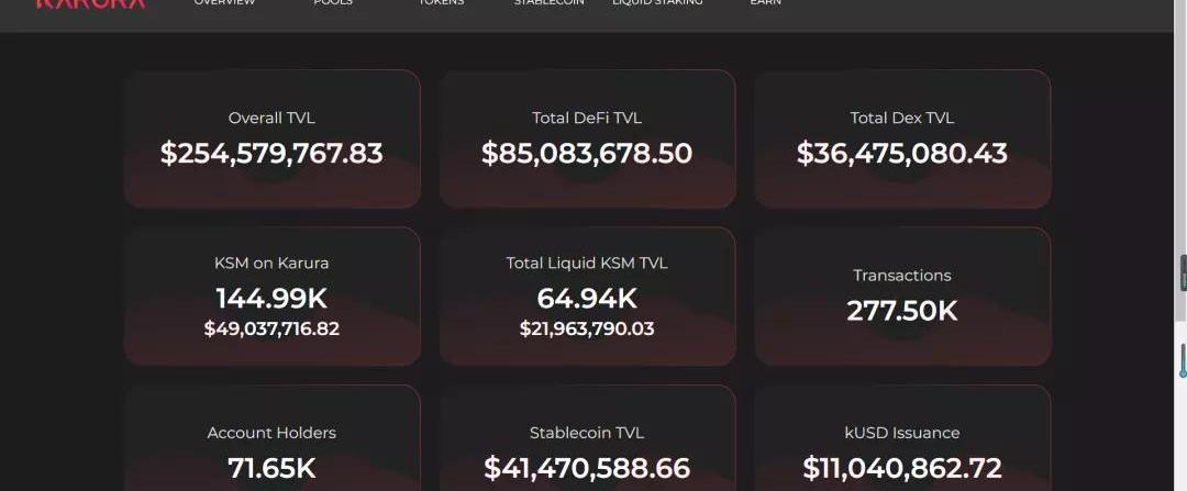 官方自己推出的汇总网站,比如Karura的https://stats.karura.network/