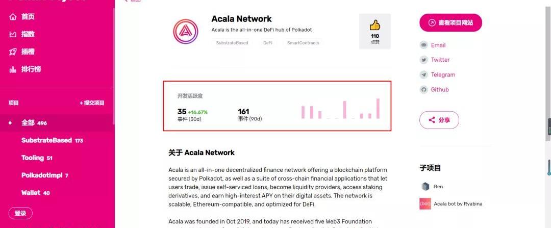 所谓拿事实说话,就是不看吹嘘,只看数据。可以从几个维度来看,一看开发进度,可以通过Polkaproject搜索到对应的项目,并查看他们的开发活跃度:https://polkaproject.com/