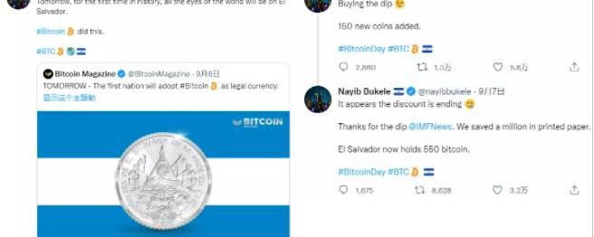 看看这两个币圈大事件,不能说毫无瓜葛,但的确十分巧合~两者间的奇妙缘分也在一定程度上促进了萨尔瓦多总统NayibBukele的“期待”达成——“世界的目光都将集中在萨尔瓦多身上”。