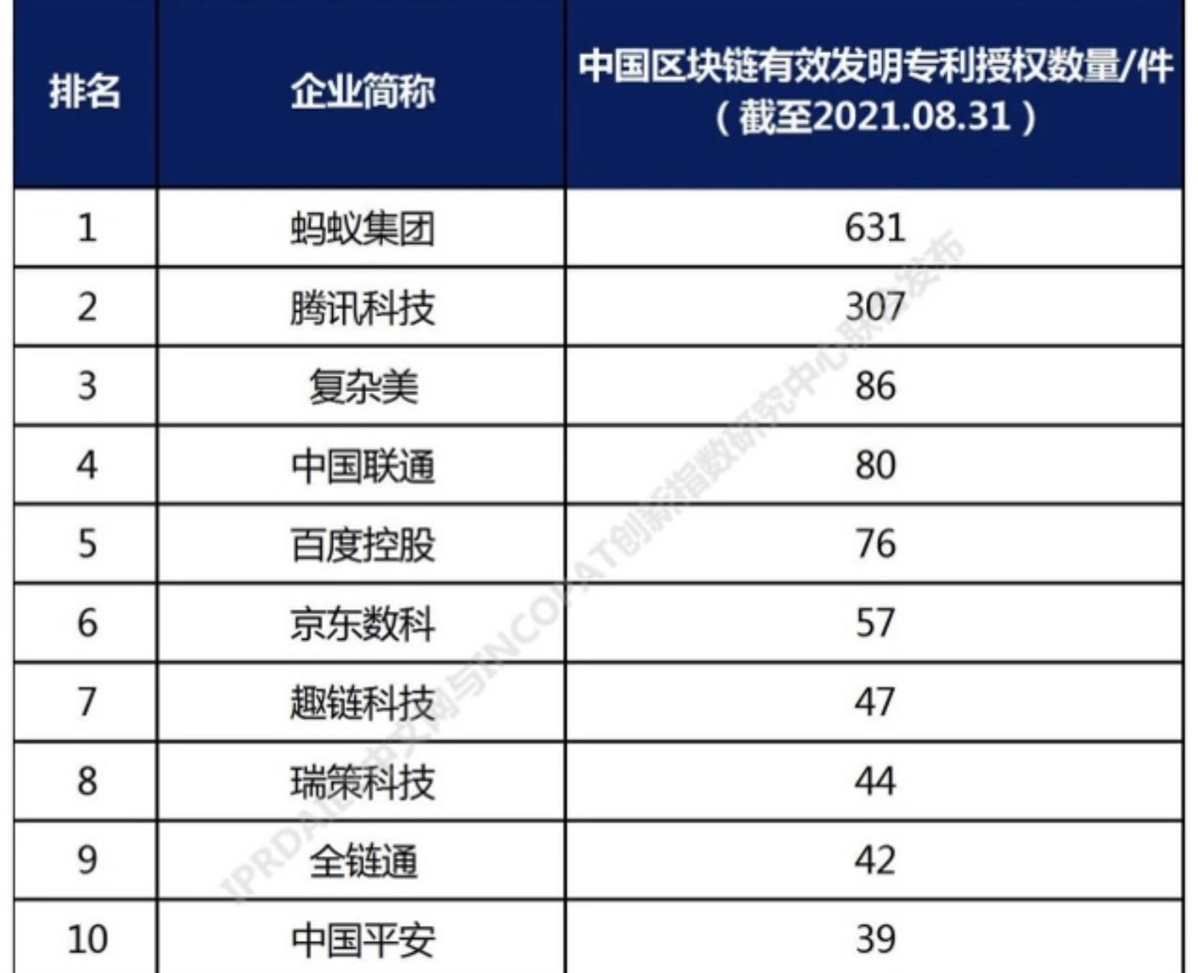 巴比特讯,9月27日,知识产权研究机构IPRdaily与incoPat创新指数研究中心联合发布《2021年中国高相关度区块链授权发明专利排行》。报告显示,中国的有效区块链发明专利授权量在过去两年中快速增长,其中数量最多的前三家公司分别为蚂蚁集团、腾讯科技和复杂美。