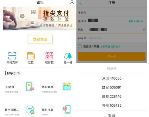 从网上流出的农行数字货币钱包截图看,其显示的主要功能与银行电子账户日常支付与管理功能基本相似,如农行数字货币钱包首页中,有“扫码支付”、“汇款”、“收付款”、“碰一碰”四大常用功能。