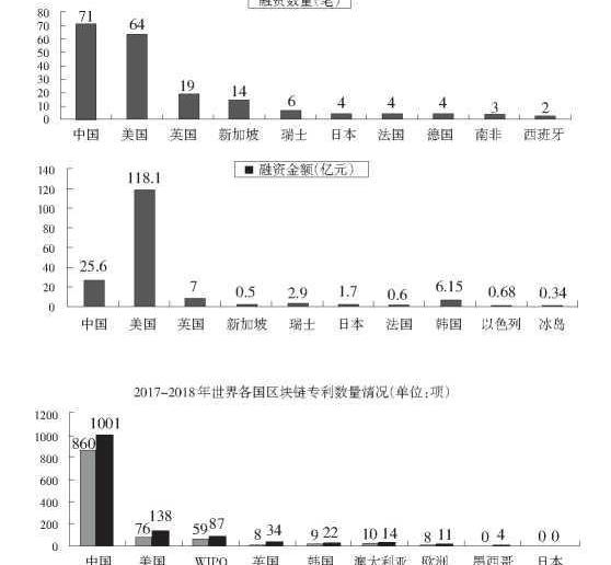 B.2017年和2018年,我国区块链行业相关技术获得的专利数量,大幅度领先美国,全球领先,这体现了中国在区块链竞争领域的优势。