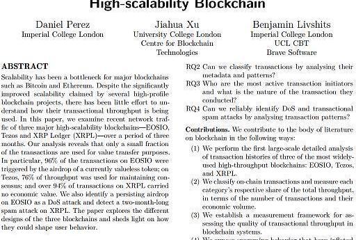 按他们的说法,尽管表面上eos的tps很高,但大部分的交易,没有产生价值转移。最终得出结论,eos的实际吞吐量仅有34tps,远没有3000+这么高。