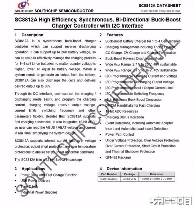 南芯SC8903规格资料。充电头网了解到,南芯SC8903此前已被AnkerPowerCoreFusionPD超级充MOMAX66WUSBPD充电器等产品采用。
