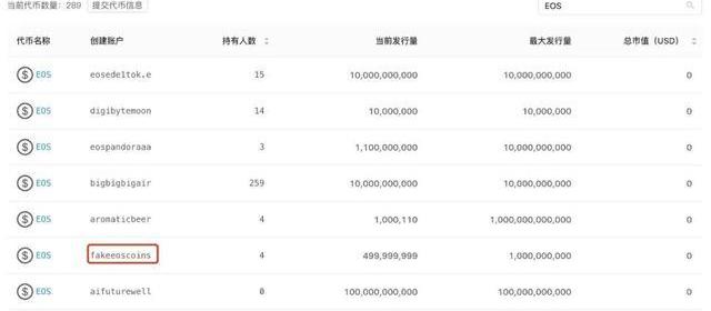 甚至有一个假币发行者,名字就叫“假EOS币”。