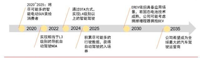 长期看,理想有机会成为一家自动驾驶的科技公司。2020年5月,李想在接受《建约车评》专访时表示,他“造车、拼命地卖车,就是希望在2025年的时候,能够获得一张自动驾驶赛道的入场券,到2035年的时候,让理想汽车成为全球最大的汽车驾驶运营商”。我们认为,理想汽车是希望在目前中国充电条件还不成熟的情况下,通过低成本的增程方案卖出去尽可能多的车,进而获得足够多的数据来支撑公司在智能驾驶上的迭代和发展。