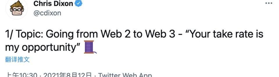 Craigslist在分类广告领域做到了降低价格并将价值重新分配给用户;Google和Facebook在媒体领域做到了降低价格并将价值重新分配给用户;TripAdvisor和Airbnb在旅游领域做到了降低价格并将价值重新分配给用户。现在,一些Web3初创公司也开始蚕食传统Web2公司的利润,这一趋势仍在继续——只要Web2公司的抽成越高,Web3公司的机会就越大。