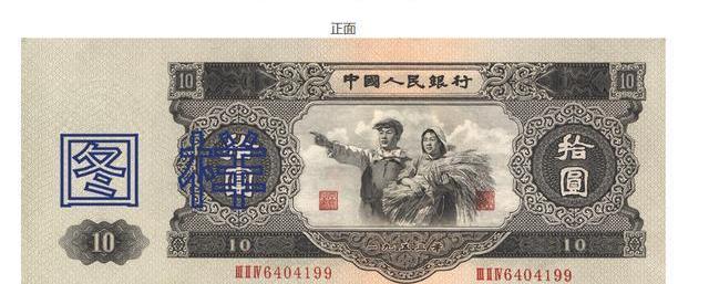 提起第二套人民币,不得不说大黑拾,大黑拾是什么,它是第二套人民币10元的另一称谓。1953年10元纸币,因为整体花纹颜色呈墨黑色,为加长版,因此也被称为“大黑拾”,正面图案是“丰收图”,图案是怀抱稻穗的女农民和头戴鸭舌帽的男工人,寓意为中国工农阶级当家做主,拥抱全新的生活,背面为各民族文字图案。大黑拾是新中国成立时的见证,具有较深刻的历史意义,因此在钱币收藏市场备受看中时代价值的藏家的青睐。目前市场价近20万元。