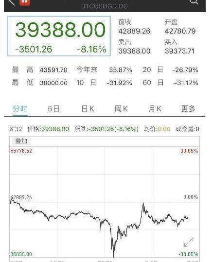 截至发稿,比特币较低点又反弹超30%,现跌8.16%,报39388美元/枚。