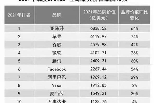 2021年凯度BrandZ全球最具价值品牌TOP10