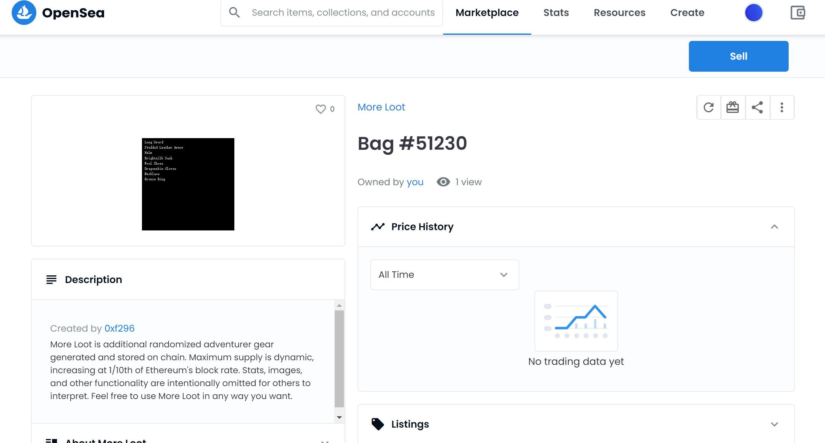 截止目前,Loot在?OpenSea?二级市场上的交易量超过50,000ETH,每个NFT底价为9.4ETH。