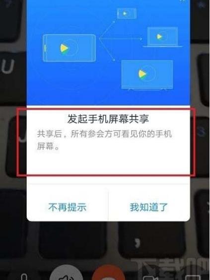 “屏幕共享”相当于手机的录屏操作它会把屏幕上显示的内容全都记录下来并同步让对方看到包括弹框显示的短信、微信、其他App推送的内容