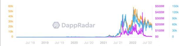 OpenSea用户、交易量和交易统计。资料来源:DappRadar
