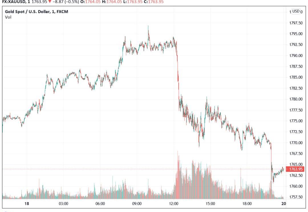 反过来,如金银等商品也受到影响。在XAU/USD交易组合中,贵金属从1,800美元的高点下跌,截止本文时为1,763美元,而XAG/USD的交易组合也出现了类似的损失。
