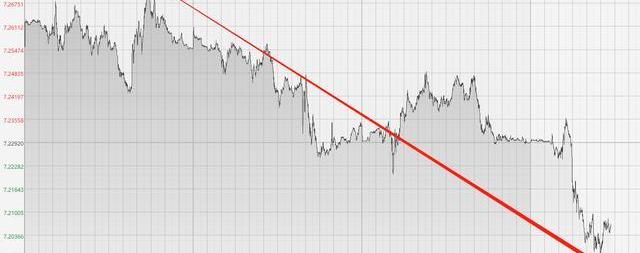 今天在离岸汇率市场上,人民币对美元的汇率斩破了7.20,最高时达到了7.1951。