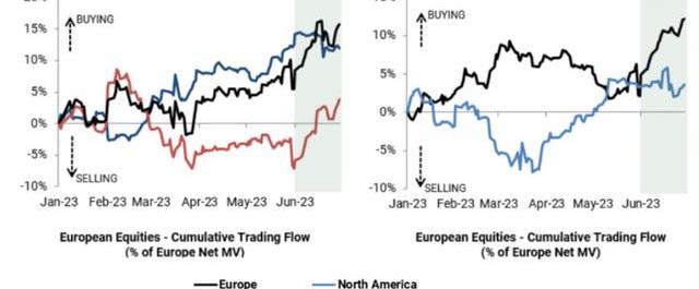 1.高盛表示,欧洲股市出现了四年来最大的月度净买入,现在该区域股票的超配比例达到了有记录以来的最高水平。