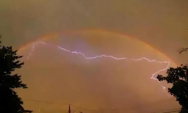 当闪电遇上彩虹。闪电强硬,彩虹温柔。这画面,柔中带刚,刚中带柔。