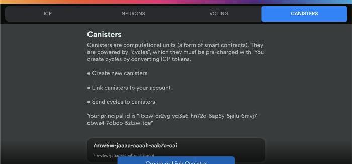 接下来,导航到右上角的CANISTERS选项卡。您应该会看到以下屏幕: