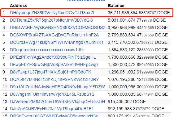 再来,狗狗币持币地址中,有个DH5开头的地址里持有超过367亿个Dogecoin,占总量28.34%!按目前市场价计算,价值超过140亿美元!