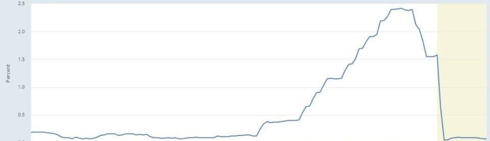 7/自2008年以来,美联储一直将利率维系于接近于0的水平。由于利率水平与实体经济完全脱节,在支撑旧债务的同时又大举激励出新债务,从而造成恶性循环,因为贷款基本上是「免费的」。
