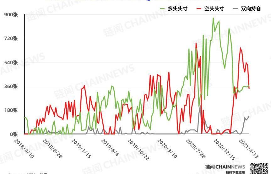大户持仓方面,多头头寸自3105张大幅回落至2433张,空头头寸自174张降至0张,双向持仓保持0张不变。大户账户是最近统计周期内唯一一类进行了明确多单减持的账户,而且这种大幅度的多单减仓表达出了相当明确的偏空态度。不同于其他几类机构账户继续坚定追涨并未对该统计周期结束后的大幅回调作出提前应对的「错判」,大户反而成为了唯一一类准确「预见」回调的账户。考虑到大户在过去几个统计周期内一直保持坚定做多的思路,这种在行情创出历史新高的背景下如此果断地做出了正确的转向预判,未来几个统计周期内大户的调仓思路看起来非常值得重点关注。