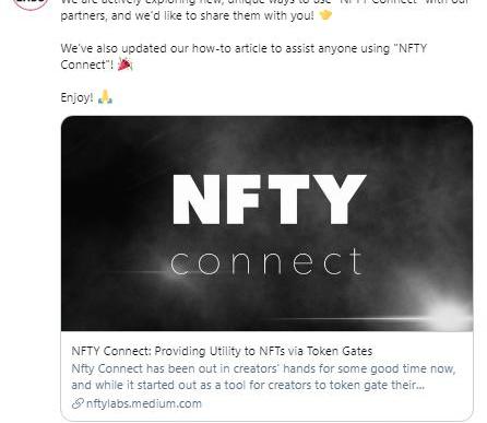 专注于NFT生态系统发展的基金会NFTYLabs发推称,正在与合作伙伴探索使用NFTYConnect的新方式。根据介绍,NFTYConnect通过独家访问营销活动为NFT提供动力。Bondly和Polkapets等平台的创作者在使用NFTYConnect,可以为NFT添加更多用例,包括空投营销、实体服装、摄影、音乐等。NFTYConnect是NFTY的第一款产品,新功能包括创建NFT特殊访问权限、使用Web3.0去中心化营销工具、解锁NFT持有者的专属访问权限。