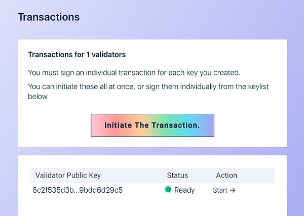 安全生成密钥之后,快速启动器会引导你把你的公钥上传到网络;公钥经过验证之后会被发送到保证金合约里。