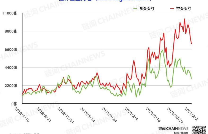 总持仓数量在最新一期数据中自10787张进一步回落至9469张,该数值时隔15周重新回到了10000张下方。由此可见,短期价格的反弹并未迅速扭转市场的偏空氛围,尤其是在过去几个统计周期内总持仓量下降速度还在持续上升的情况下,本期周报呈现的仍然是一种相当焦虑的市场情绪。