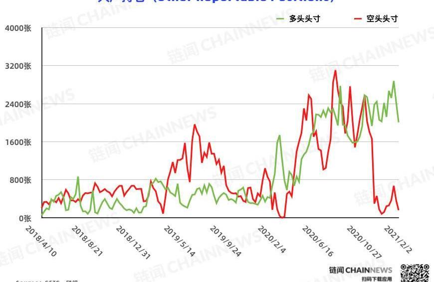 2月6日,CFTC公布了最新一期CME比特币期货周报,最新统计周期内BTC反弹了近4000美元,并且曾在统计周期内出现短短数小时内超6000美元的惊人上涨,虽然在这轮市场情绪导致的急涨过后行情大幅回吐涨幅,但是在统计周期后段价格再度反弹,从价格上来看,行情已经脱离了过去一个统计周期低位震荡所处的30000整数附近的相对低位,回到了35000美元上方。