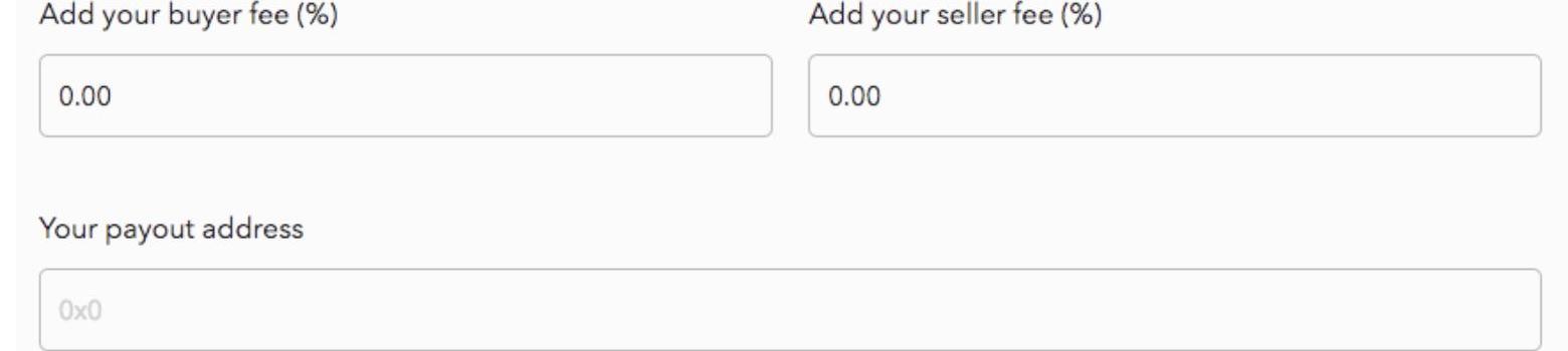 要设置二次销售费用,你只需访问店面编辑器,并调整“buyerfee”和“sellerfee”这两个字段,并指定你希望接受费用的地址。