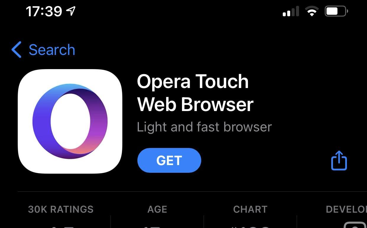 首先,在iOS设备上安装OperaTouch浏览器。搜索到请单击"立即安装"。
