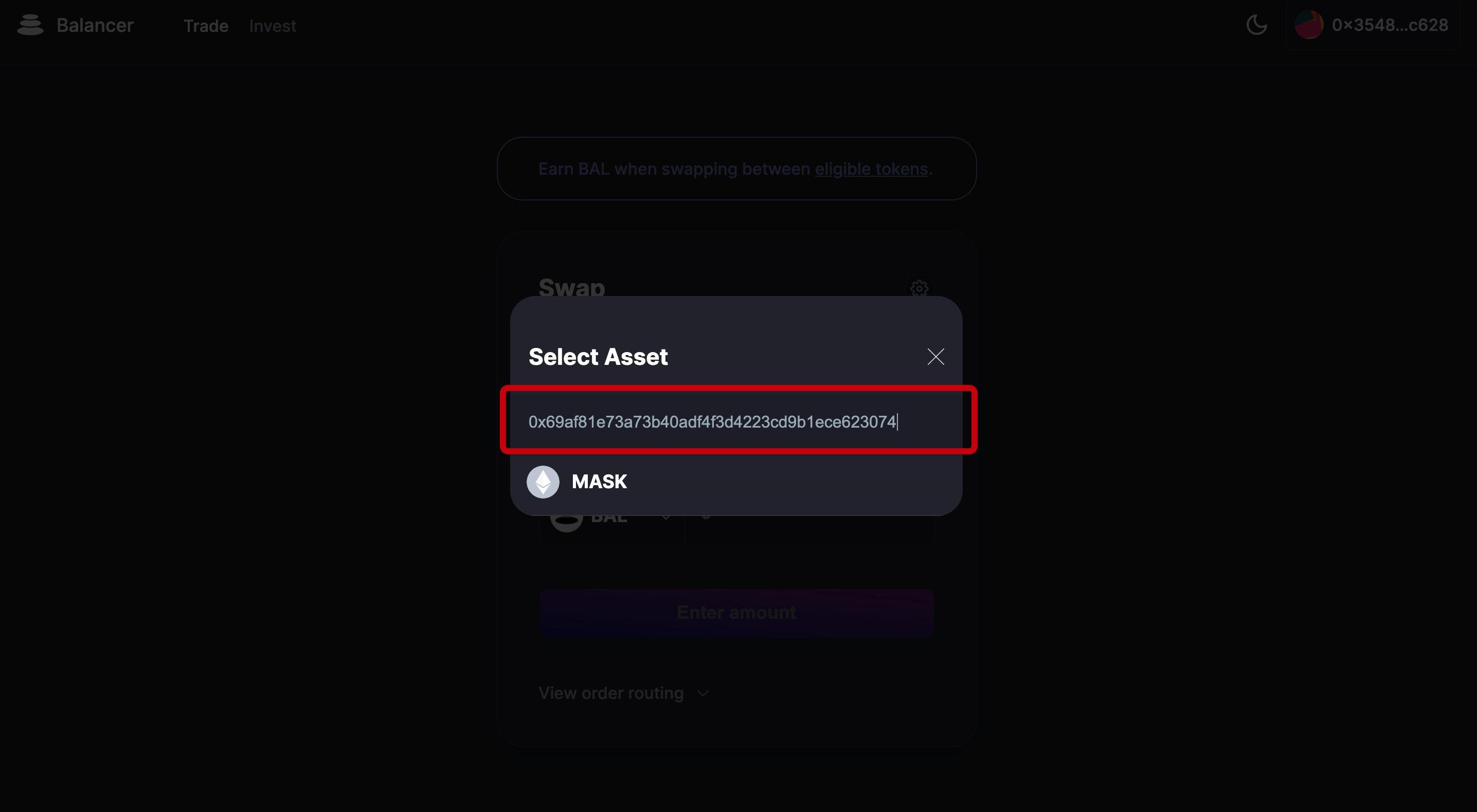 如果您选择其他资产,Balancer将自动将其转换为USDC,然后交易为MASK。额外的步骤可能会导致交易费用的增加。