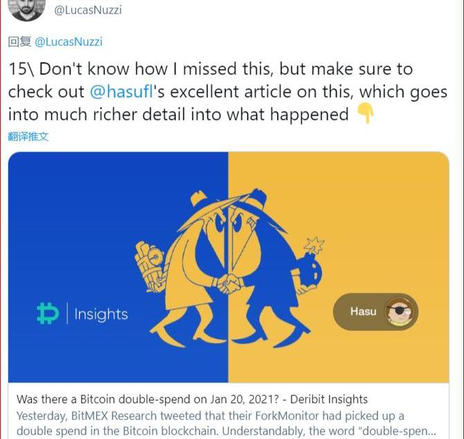 15、请务必查看@hasufl_s有关此事的优秀文章,其中详细介绍了所发生的事情:https://insights.deribit.com/market-research/was-there-a-bitcoin-double-spend-on-jan-20-2021/
