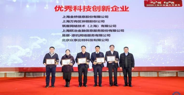 在举行新增智库专家、特聘顾问、新增理事单位、新增会员单位/个人、区块链企业认定、区块链技术应用工程师授牌仪式之后,颁奖仪式隆重举行,揭晓2020年度优秀科技创新企业、年度投资价值成长奖、优秀科技人才奖、优秀创业者奖及包括企业、专家、优秀志愿者在内的协会工作贡献的奖评选结果并授予获奖单位和个人奖牌,表彰了一批以上海金桥信息股份有限公司、筑客网络技术有限公司、上海欧冶金融信息服务股份有限公司、上海域乎信息技术有限公司、上海新致软件股份有限公司、浙江数秦科技有限公司、上海边界智能科技有限公司、北京众享比特科技有限公司,易居区块链科创中心、上海分布信息科技有限公司、上海玳鸽信息技术有限公司等为区块链行业发展做出积极贡献代表的企业和个人,激扬行业士气,促进战略分享以及不同产业链之间的跨界合作,推动杰出区块链团队和个人亮相台前获得更广泛社会关注和鼎力扶持,继续为引领数字经济时代行业发展做出表率。