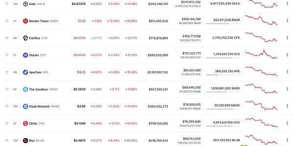 24小时NFT交易量、交易量前十项目数据来源:Coinmarketcap