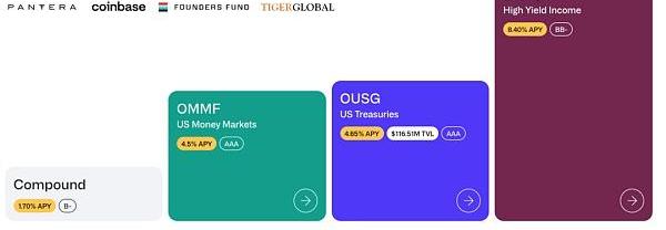 RibbonFinance在4月17日宣布推出与另一RWA协议BackedFi合作推出了基于国债的保本金期权产品RibbonEarnUSDC(V2),收益率约2%,低于其他代币化国债产品。