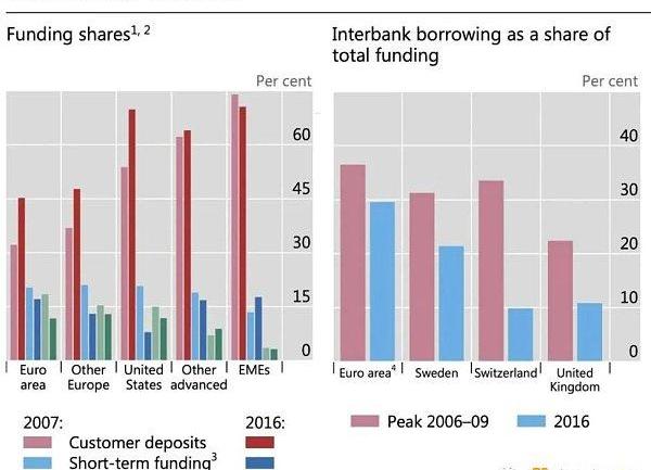 随着越来越多的准备金涌入金融体系,受担保的美元融资体系逐渐取代了未担保美元融资体系。监管机构决定要求银行不再互相依赖来融资,这意味着从影子银行在回购市场获得贷款,同时吸引更多的零售存款——这是最便宜、最符合监管要求的融资来源。