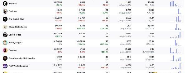 24小时NFT交易量、交易量前十项目数据来源:Coinmarketcap