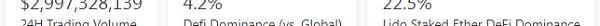 2、过去24小时去中心化交易所的交易量29.97亿美元