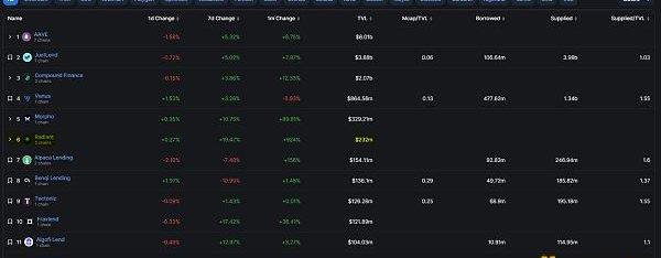 与其他借贷协议相比,Radiant的7日收益率排名第一。过去24小时的数字是……