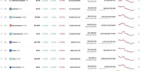 24小时NFT交易量、交易量前十项目数据来源:Coinmarketcap