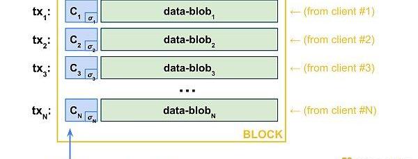 尽管这些数据是交易数据的一部分,但智能合约无法直接访问这些数据。相反,智能合约只能访问到数据块数据的一个简短承诺,称为DATAHASH。验证者承担的额外负担似乎是可以接受的:验证者目前存储不到100GB的数据以维护区块链的状态。在protodanksharding之后,他们将不得不额外存储50-100GB的数据。